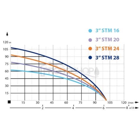 Uzina de apă menajeră cu pompă submersibilă 3" STM 28 este proiectată pentru pomparea apei potabile și menajere. Utilizarea practică a pompei submersibile STM 28 de 3" constă în primul rând în faptul că poate fi folosită pentru a pompa apă de la adâncimi mai mari de 8 m.