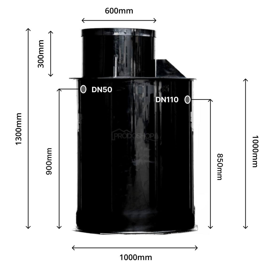 Puțul de pompare a canalizării MIDI 1300 permite evacuarea apelor uzate sau a apelor de drenaj din locații îndepărtate, cum ar fi: