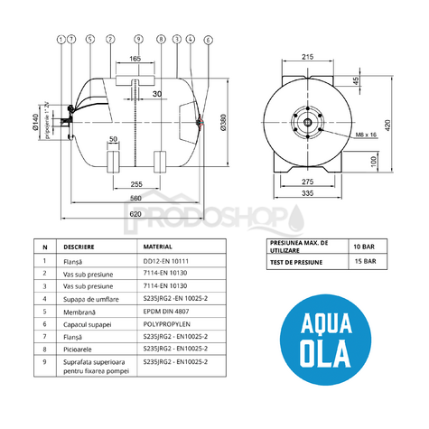 Recipientul sub presiune AQUA OLA 50l orizontal - orizontal servește ca rezervor de stocare a apei pompate pentru instalații de apă menajeră, stații de pompare și presiune sau stații industriale.