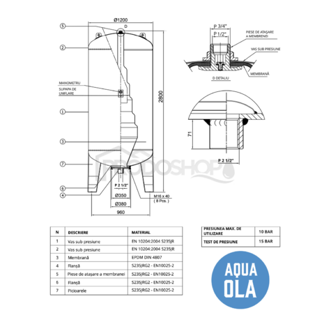 Recipientul sub presiune AQUA OLA 3000l vertical - vertical servește ca rezervor de stocare a apei pompate pentru instalații de apă menajeră, stații de pompare și presiune sau stații industriale.